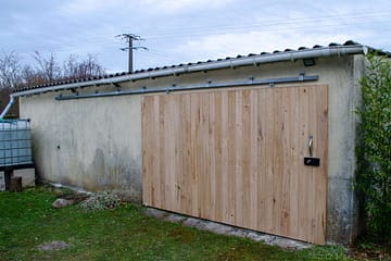 Parquet flottant contrecollé chêne, lambris peuplier et cuisine en bois massif sur mesure