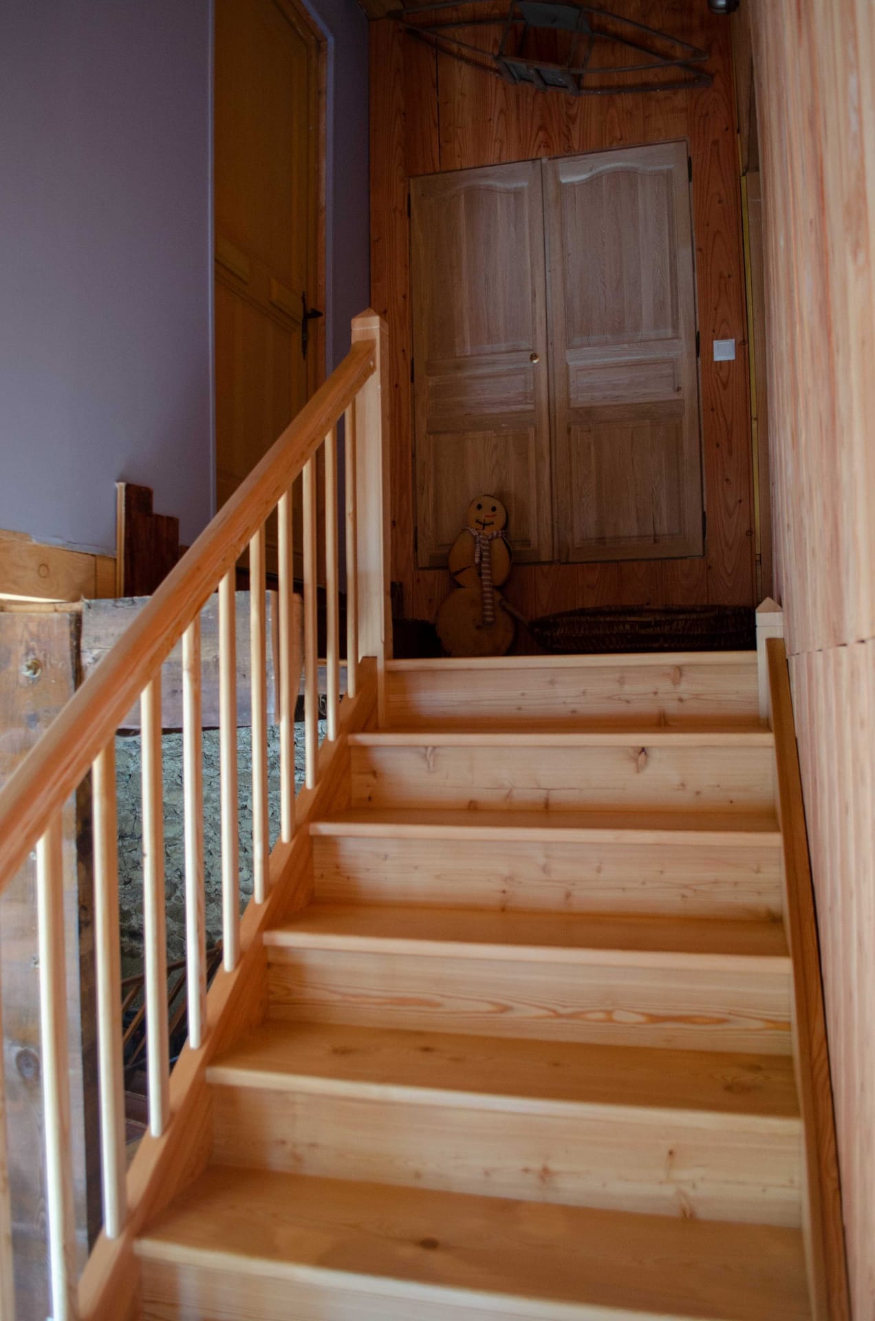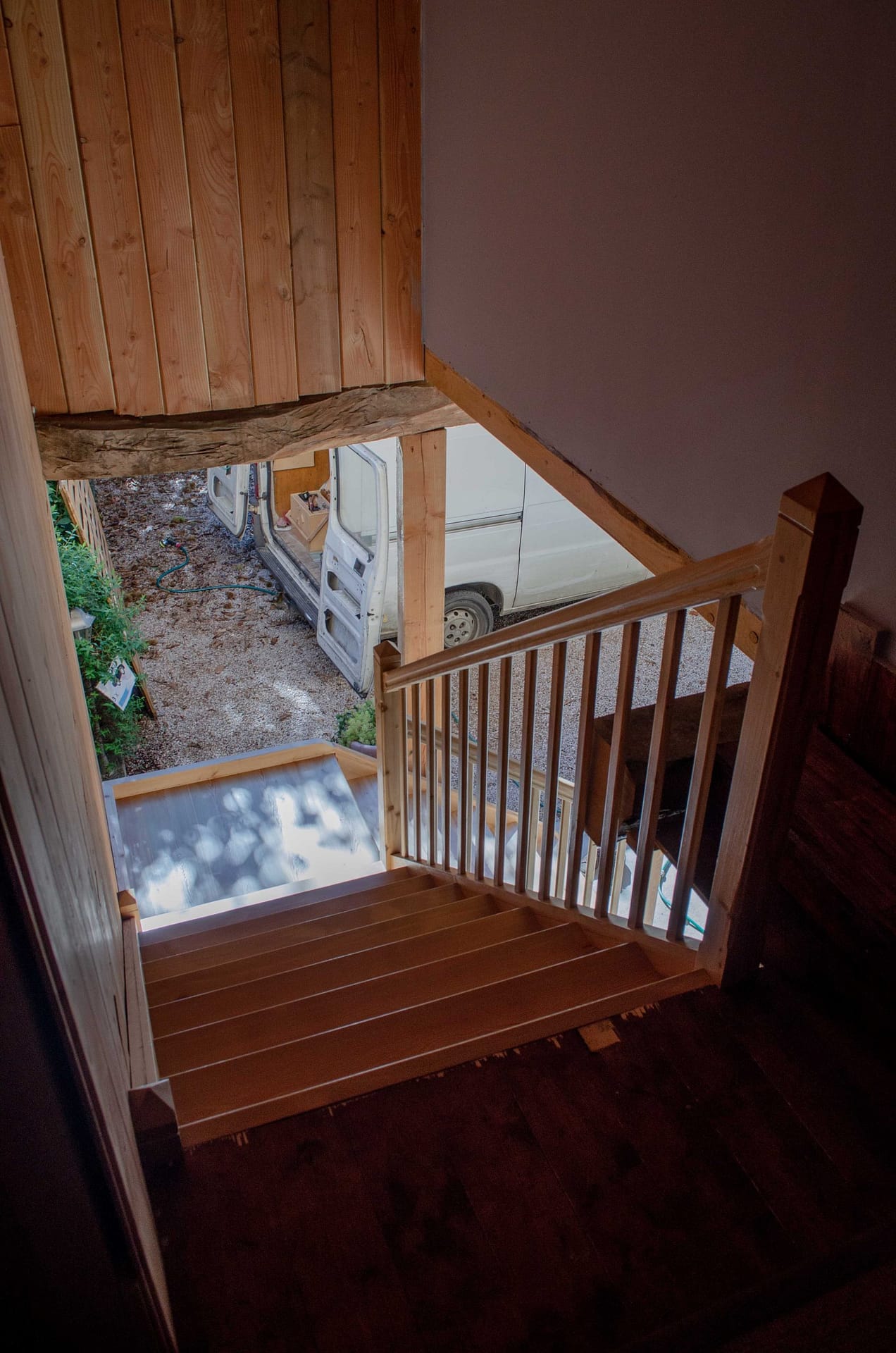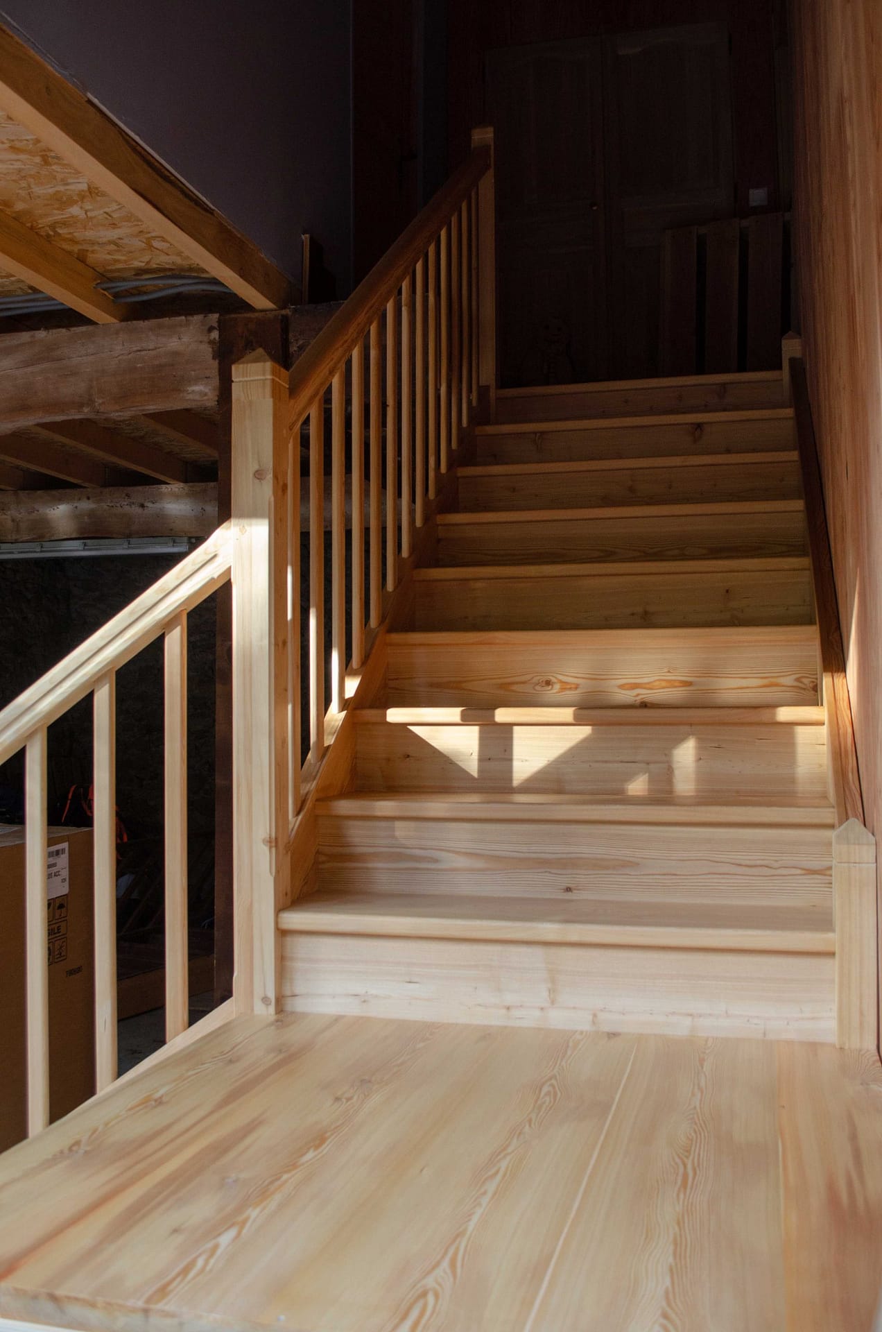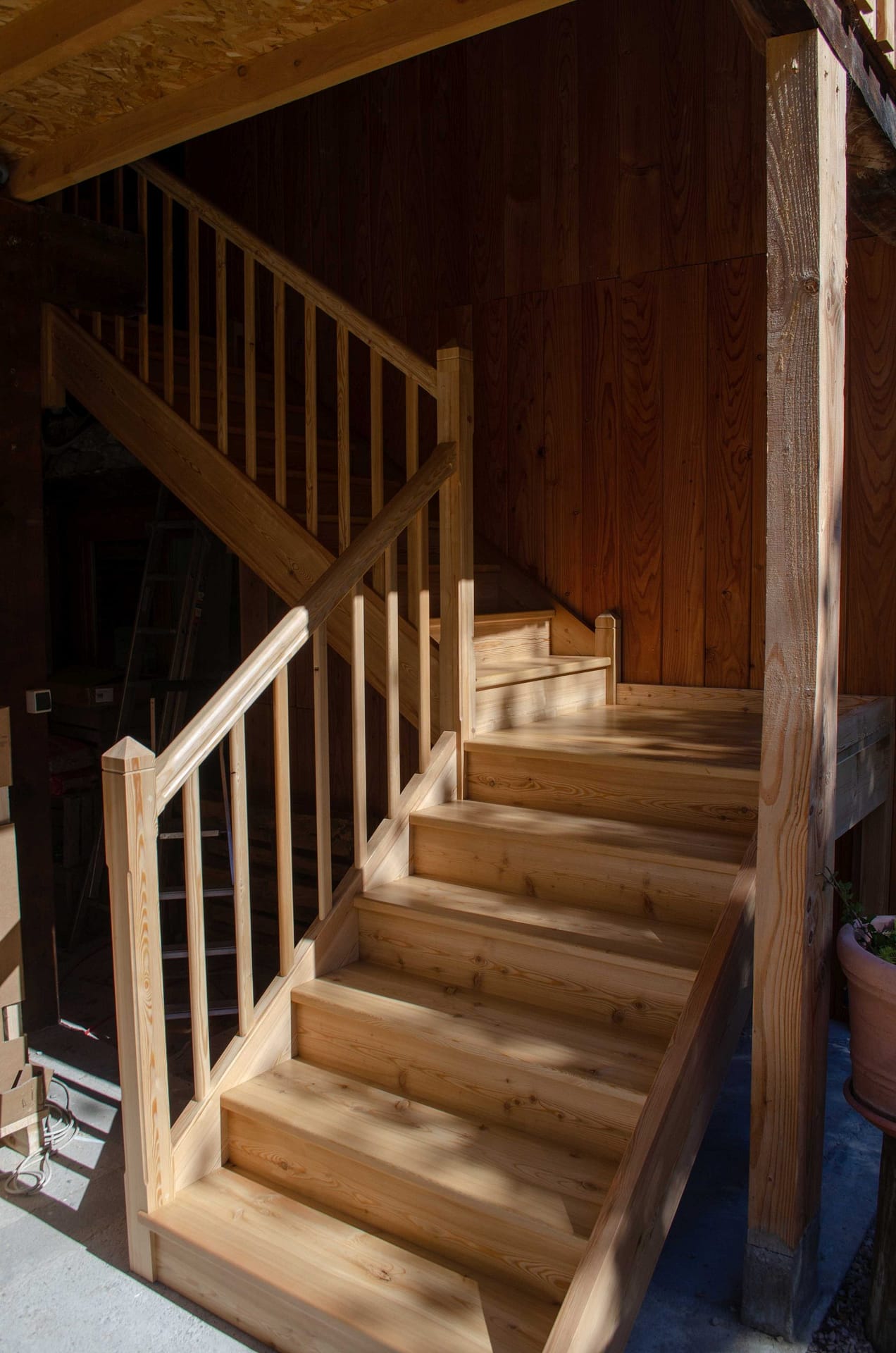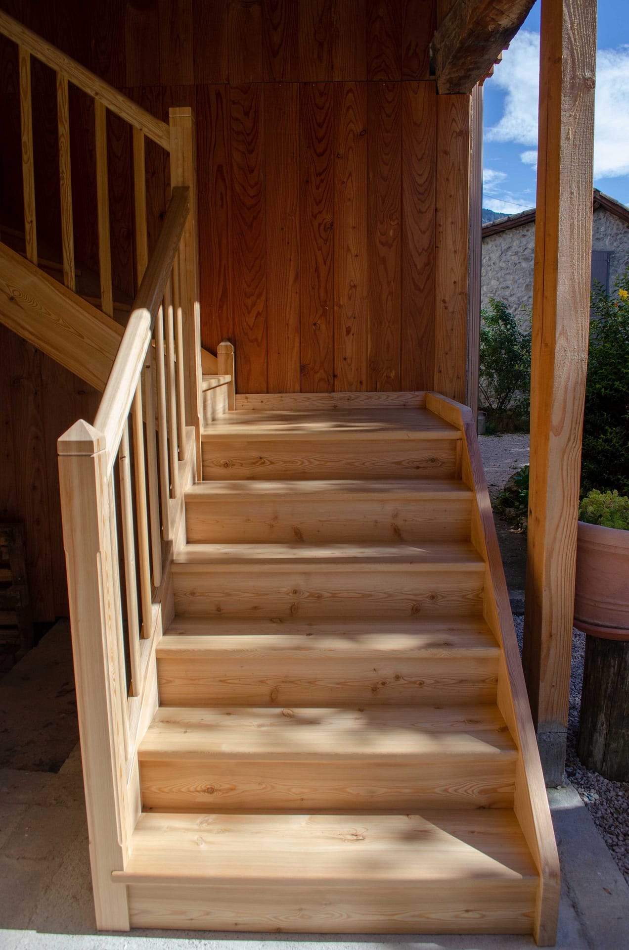 Escalier droit avec palier sur mesure en mélèze massif