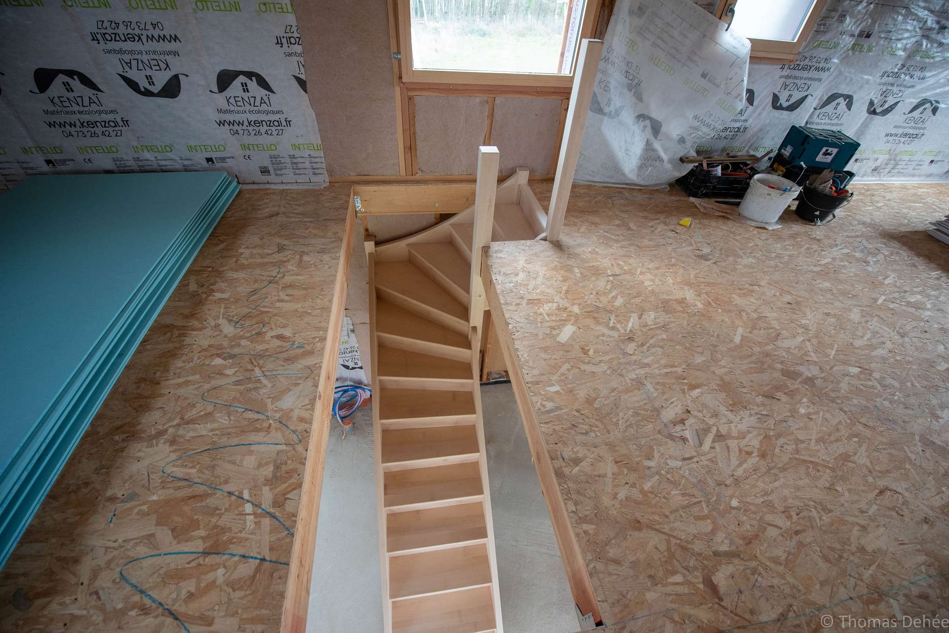 Un escalier quart tournant en hêtre pour une maison neuve