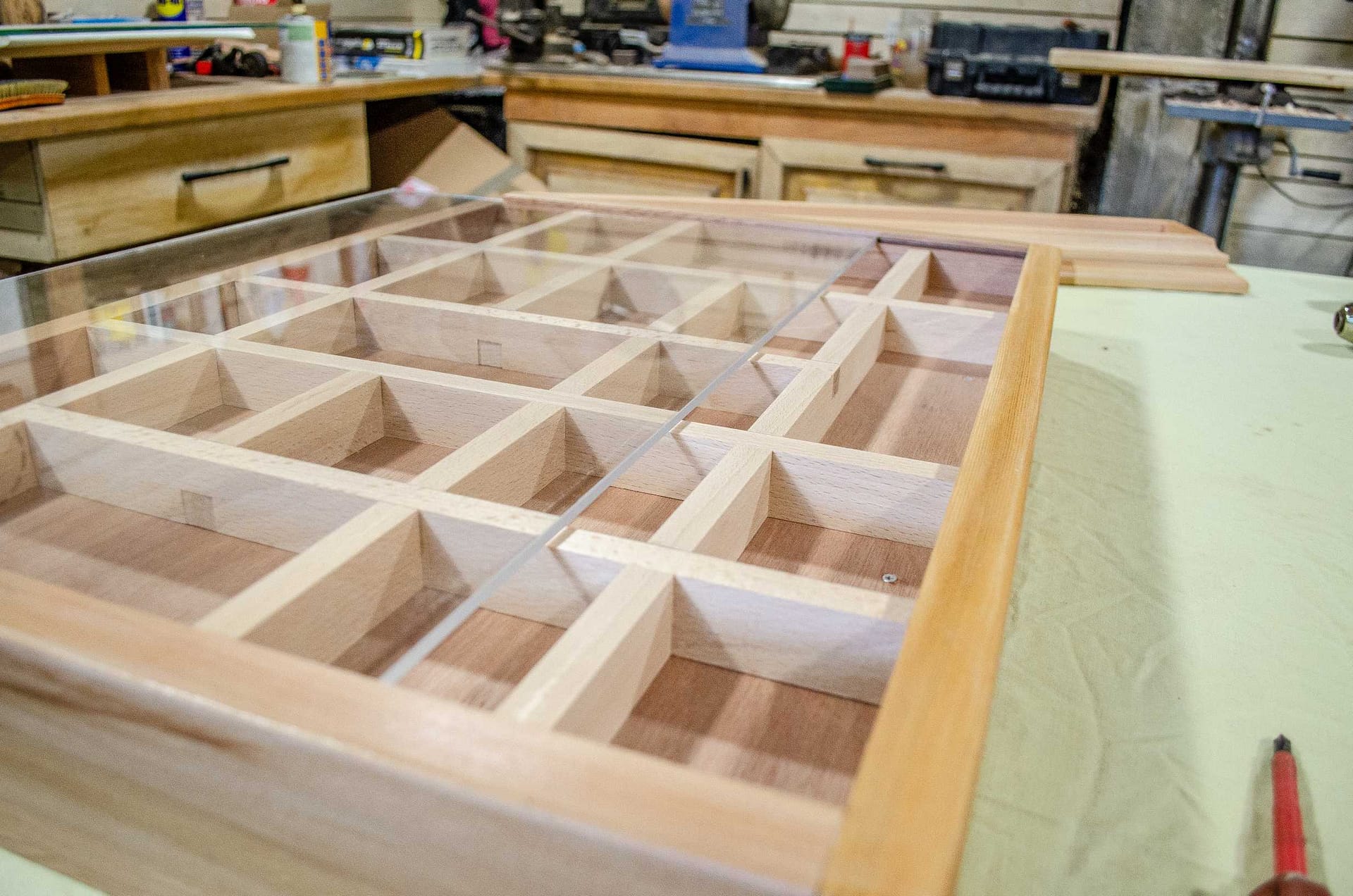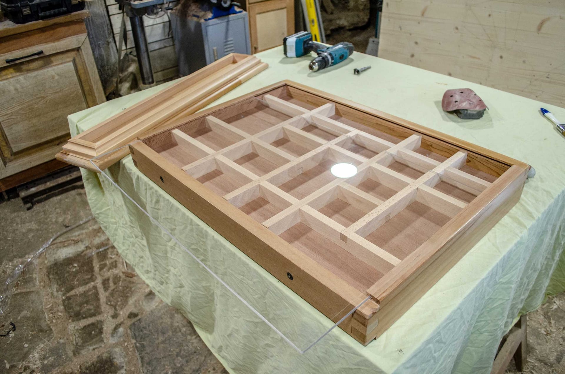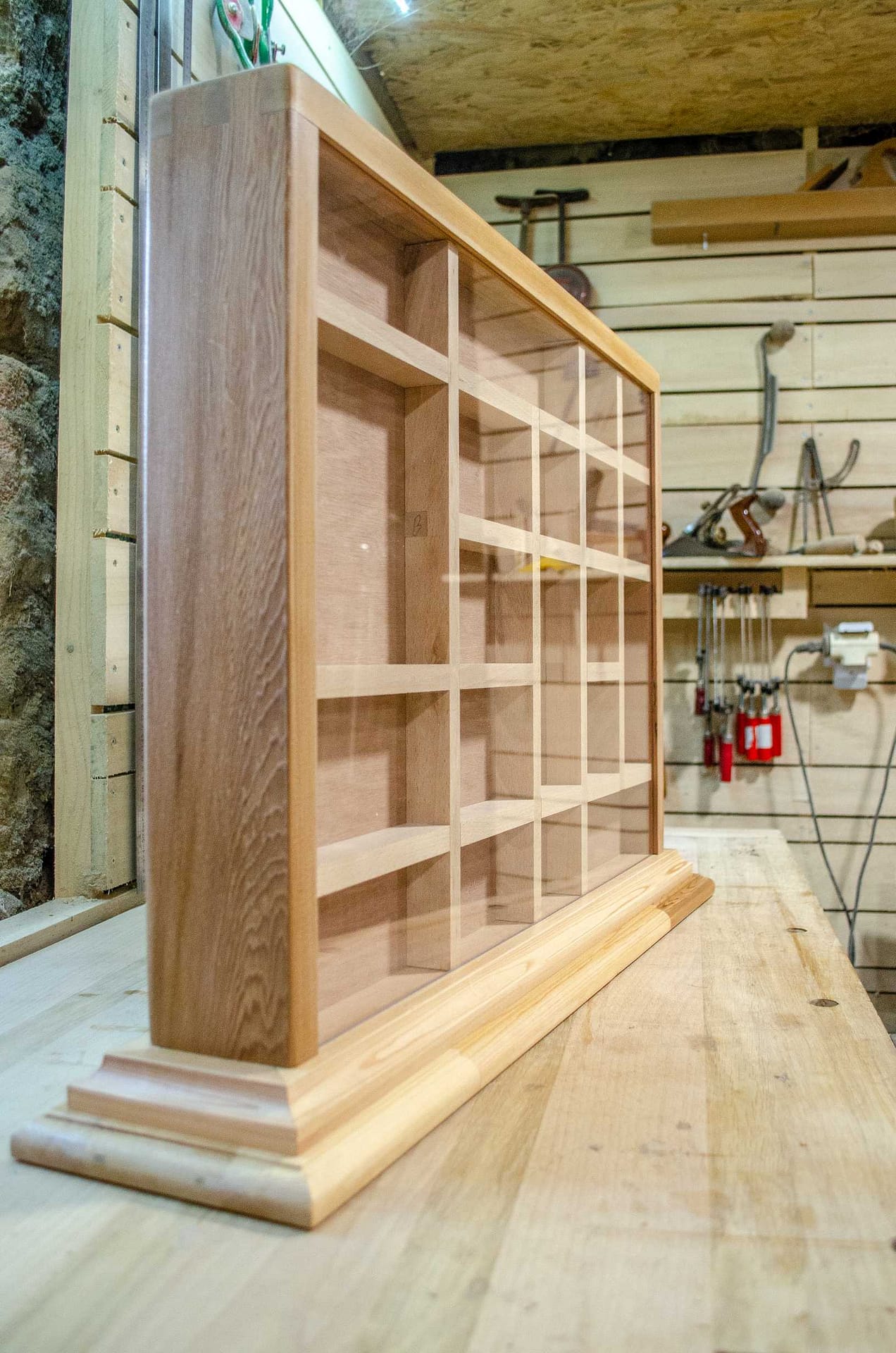 Un présentoir à graines fabriqué sur mesure en cèdre pour un semencier