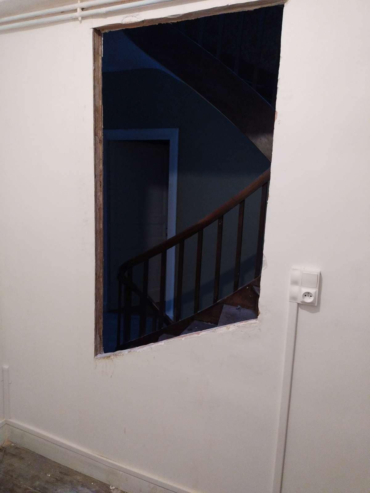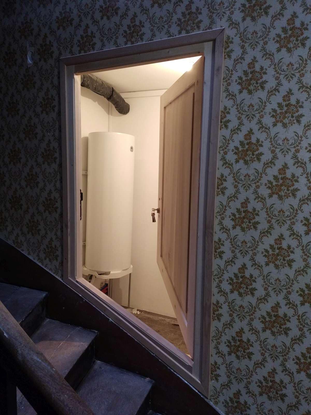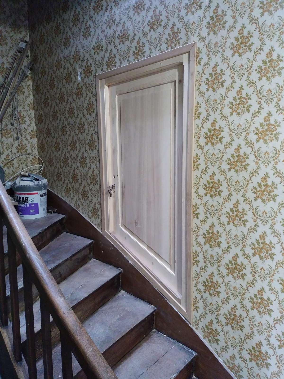 Une porte fabriqué sur mesure dans un escalier et son petit escalier en chêne