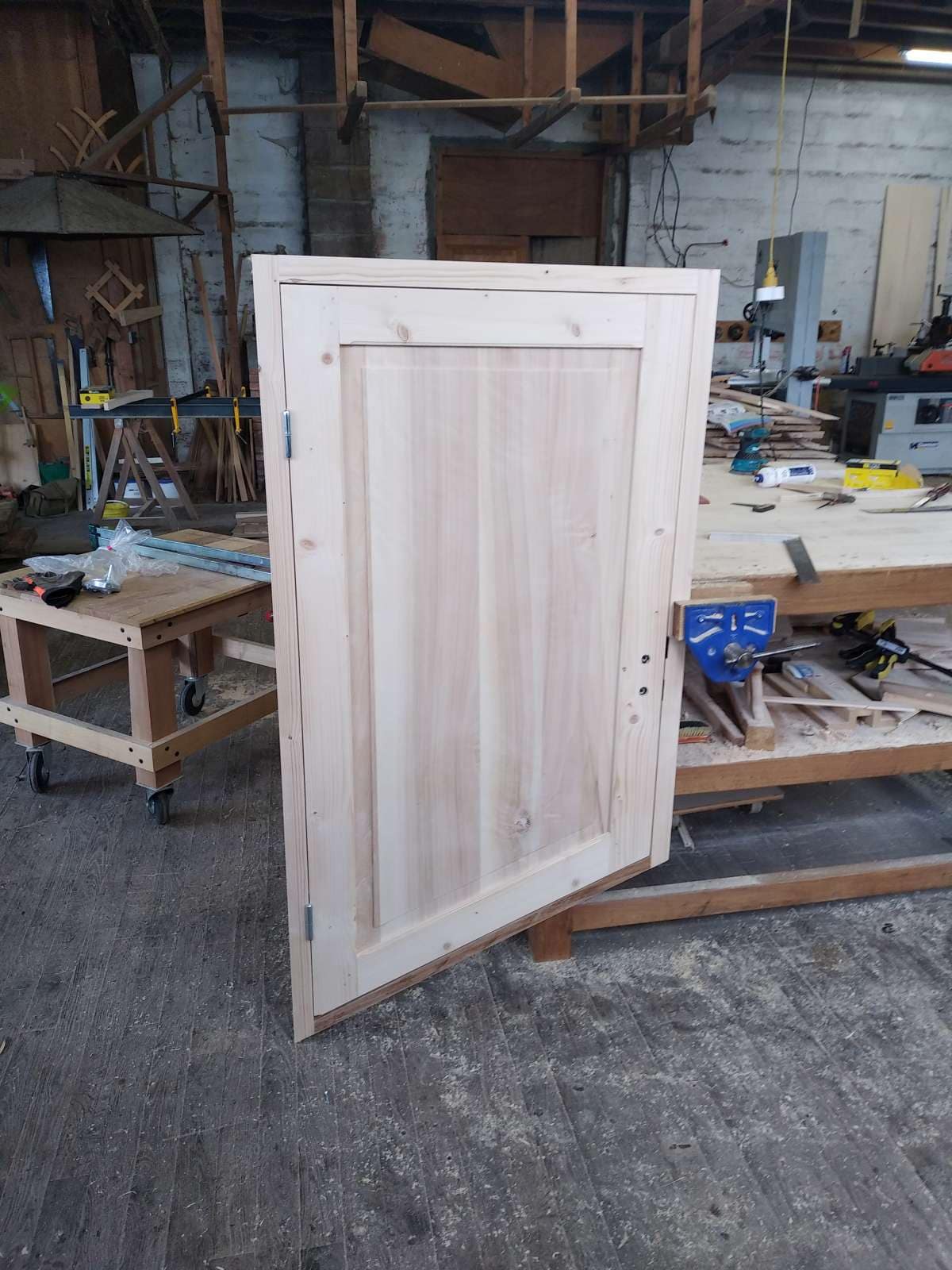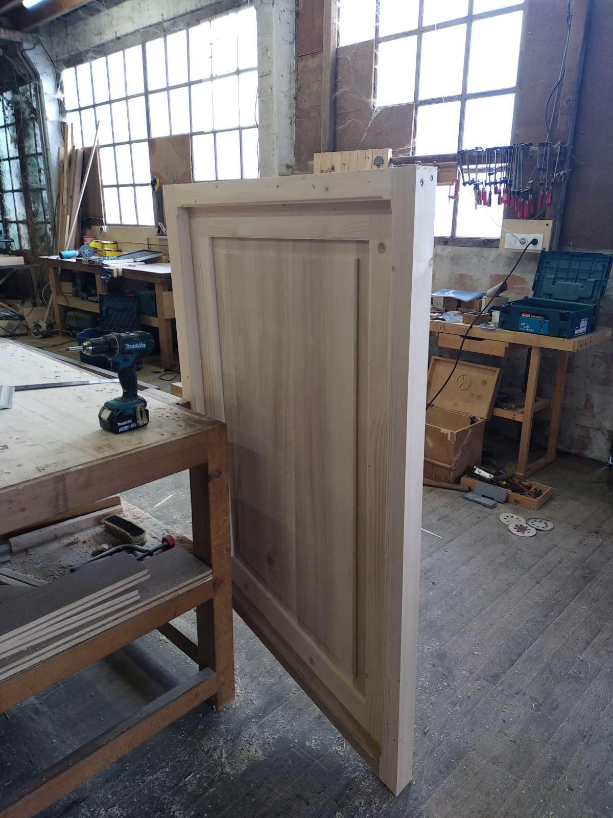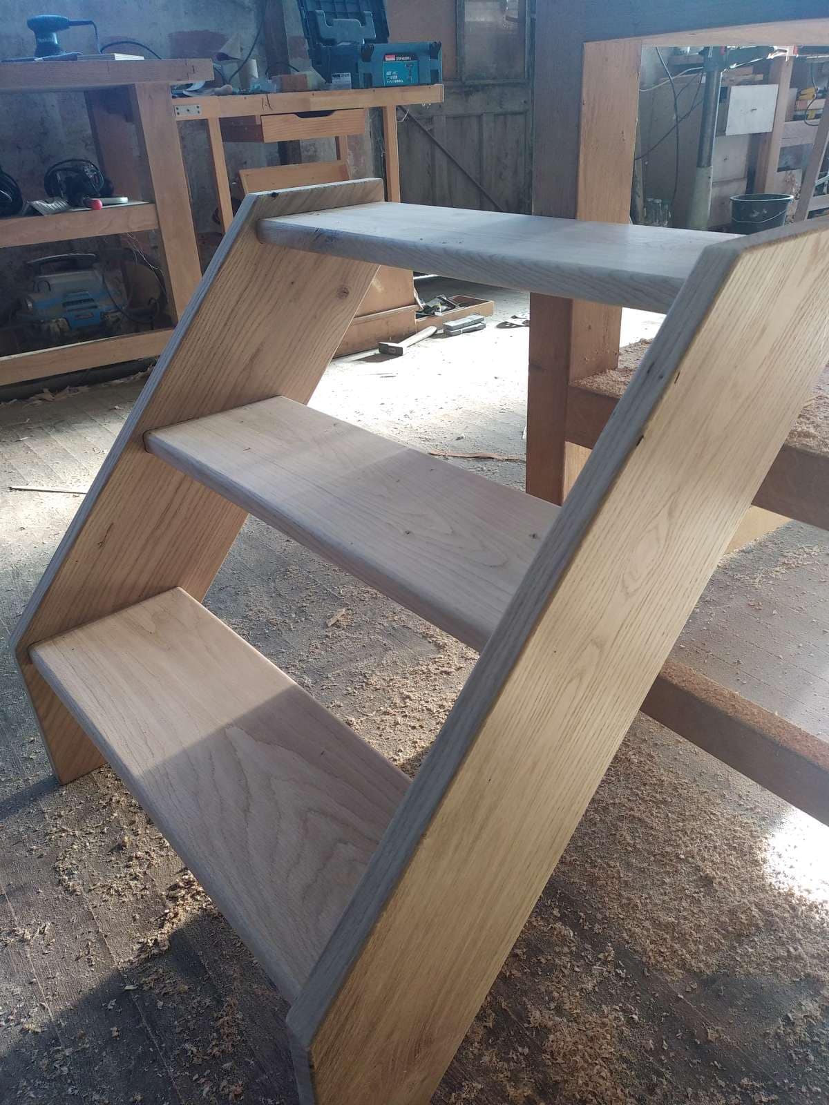 Une porte fabriqué sur mesure dans un escalier et son petit escalier en chêne