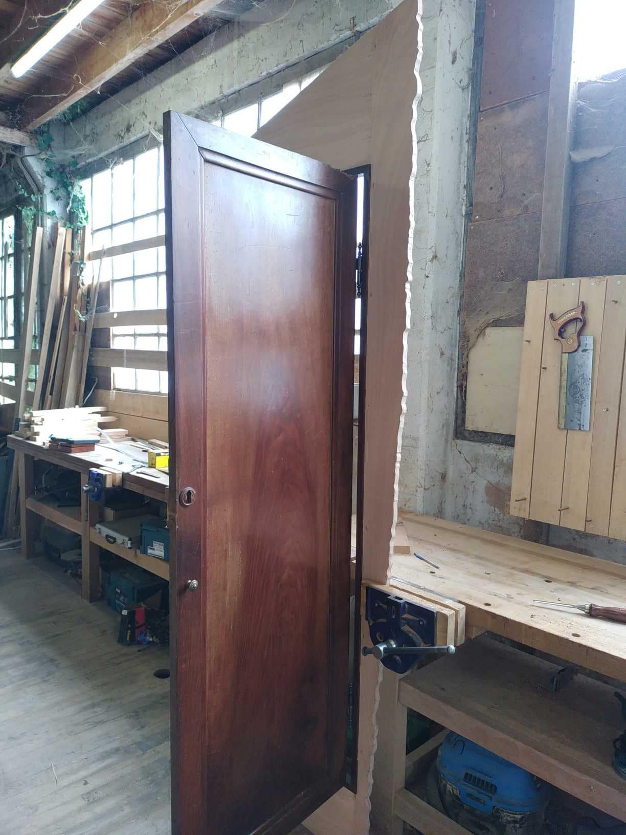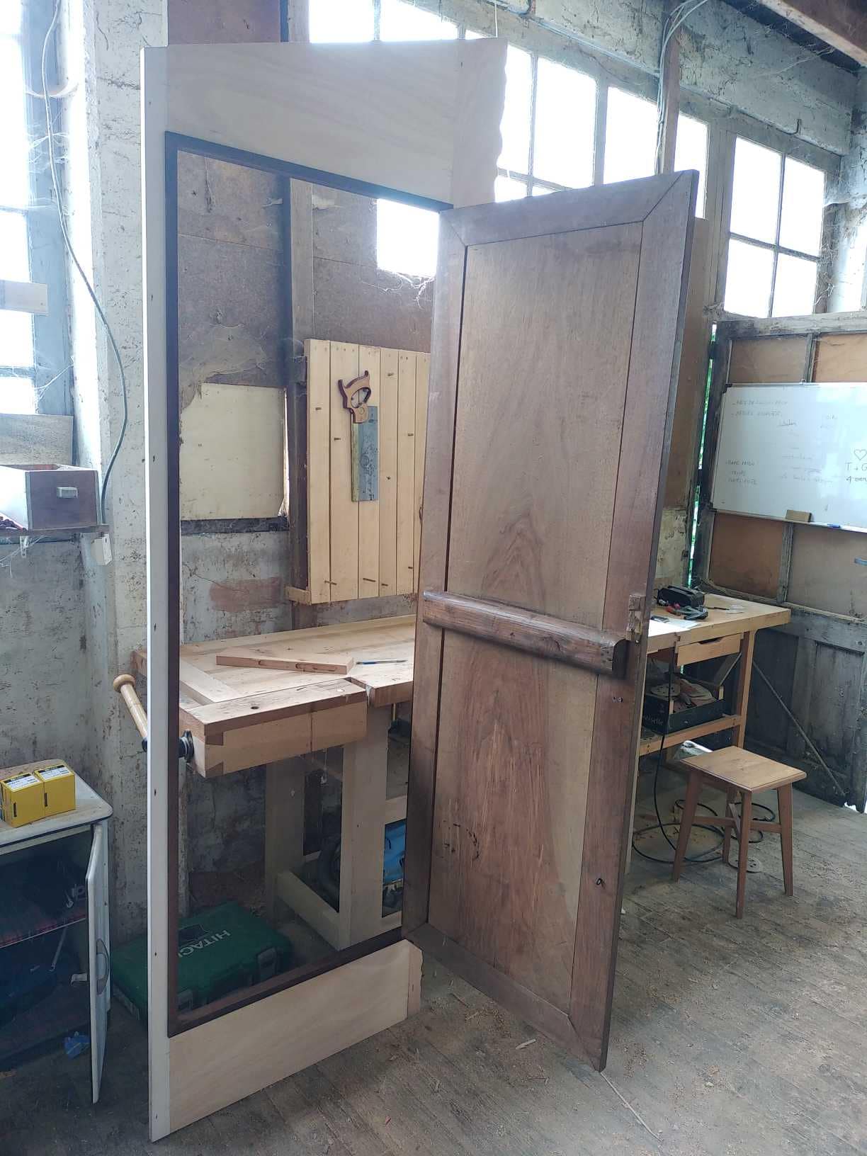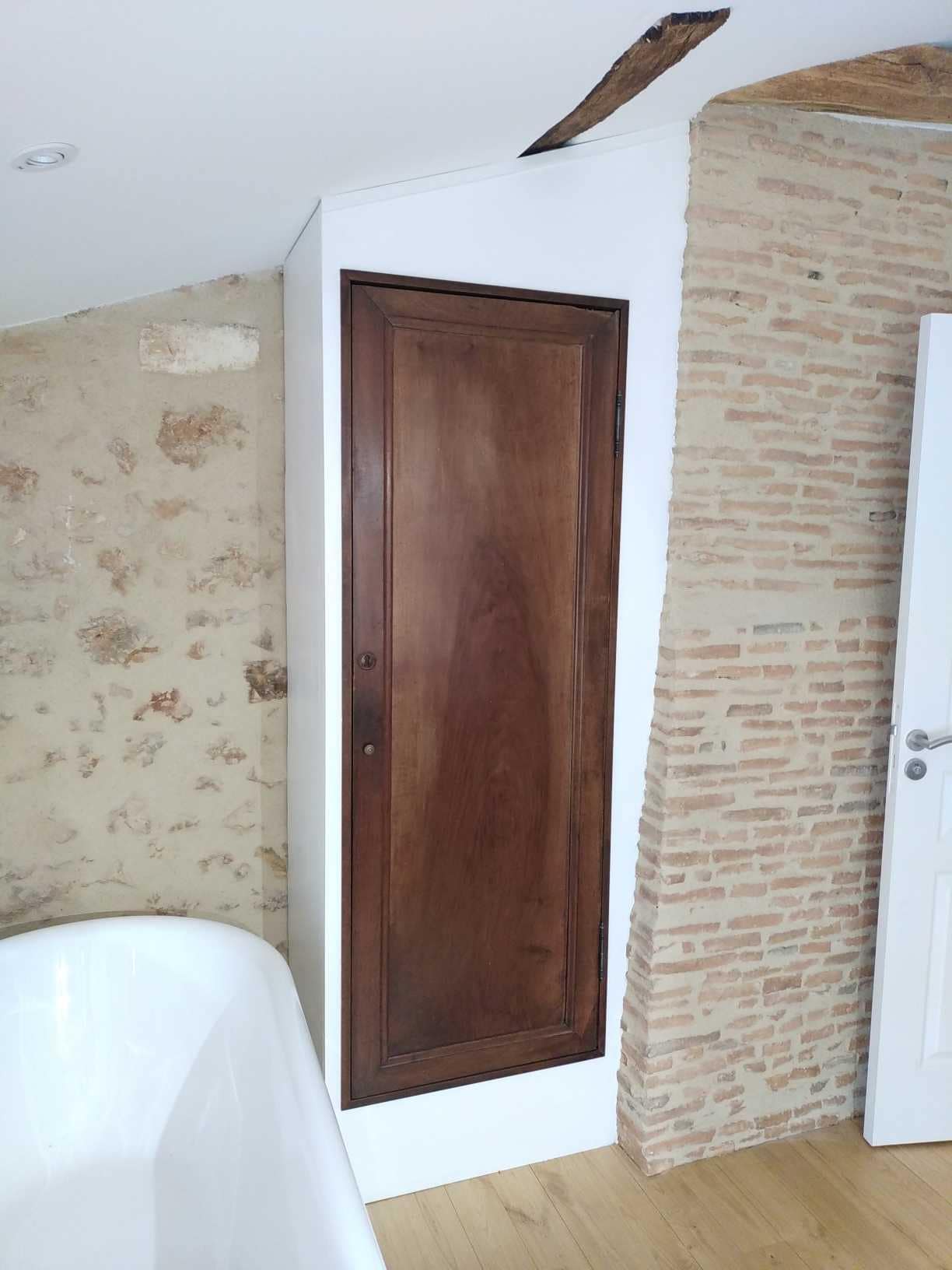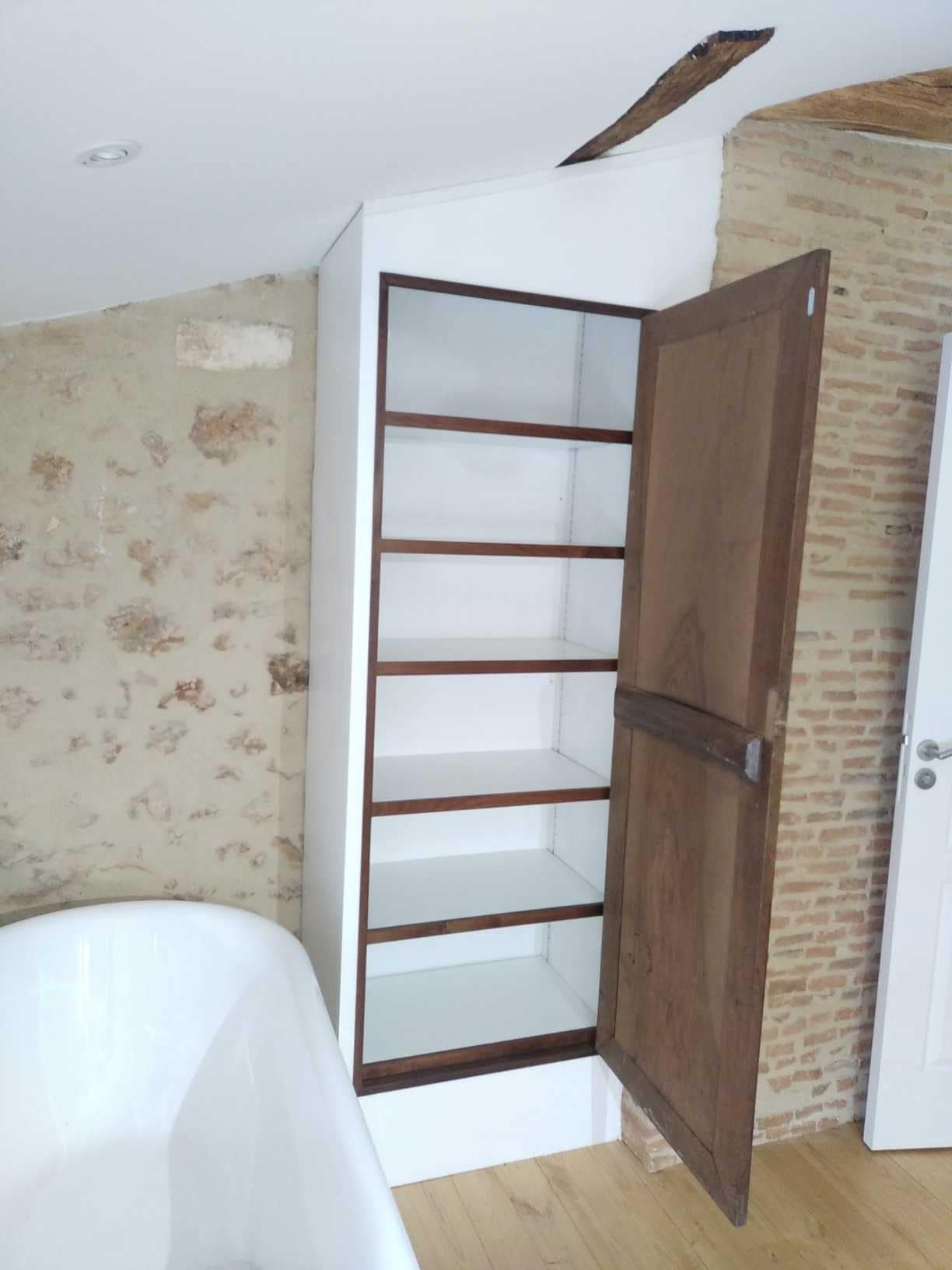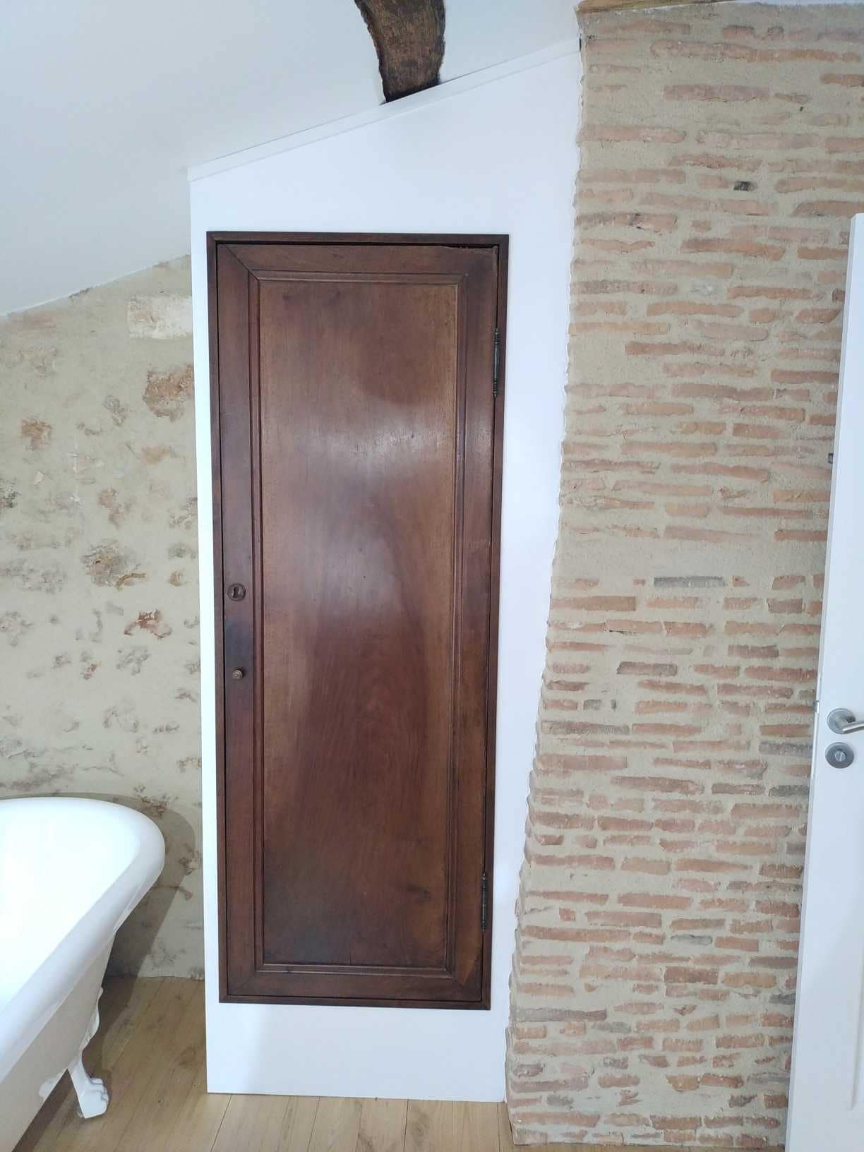 Création d’un placard intégré dans une salle de bain avec la porte d’une ancienne armoire