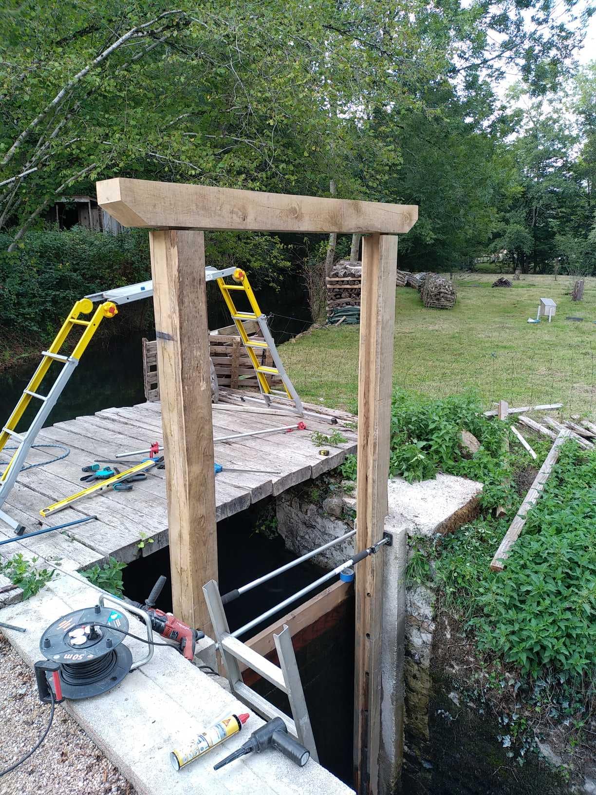 Une vanne de ruisseau en chêne