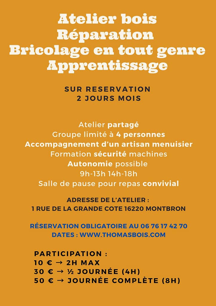 Venez fabriquer votre meuble, raboter vos planches, bricoler…