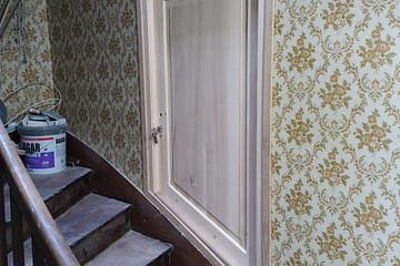Une porte fabriqué sur mesure dans un escalier et son petit escalier en chêne