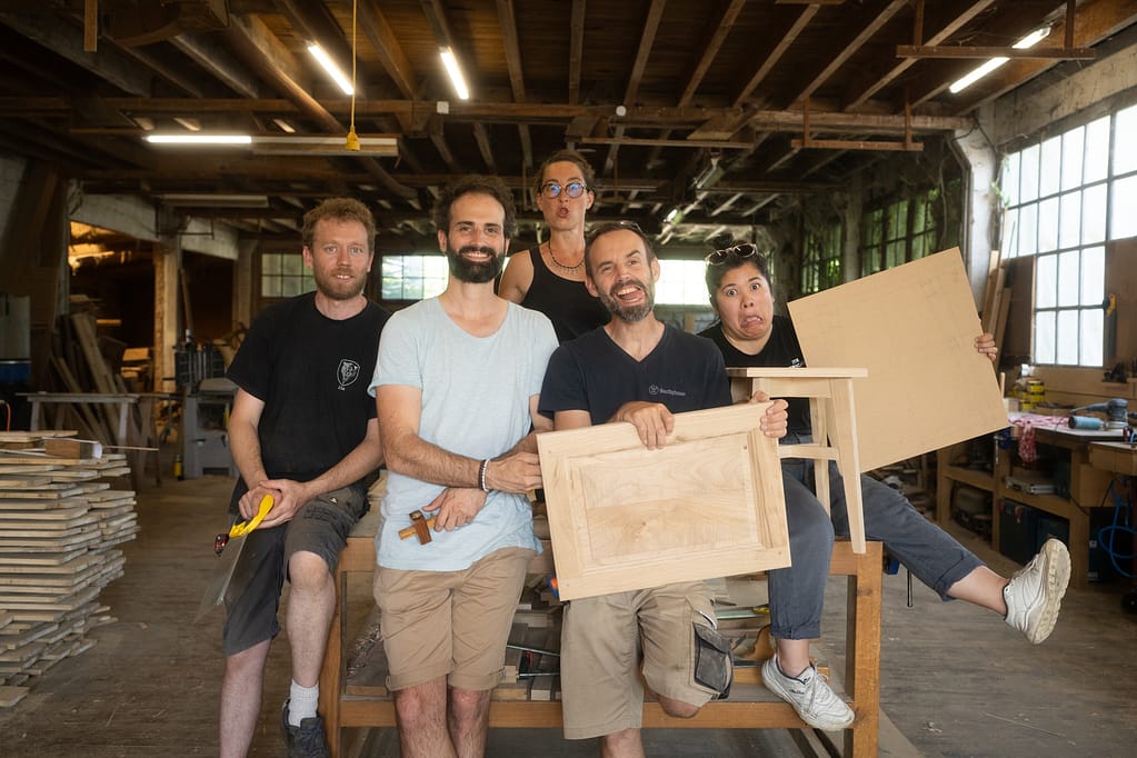 Une semaine intense et conviviale pour découvrir le travail traditionnel du menuisier, du dessin, à l’ utilisation des outils à mains et observation du réglage et d’usinage aux machines en sécurité.