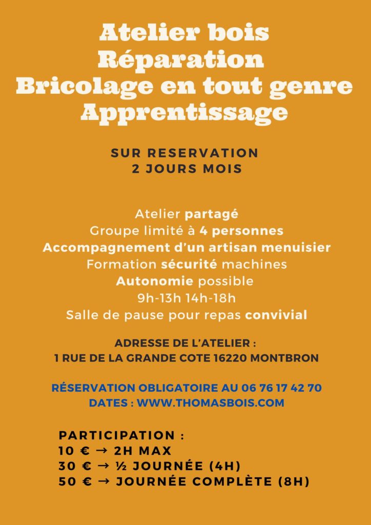 Venez fabriquer votre meuble, raboter vos planches, bricoler…
