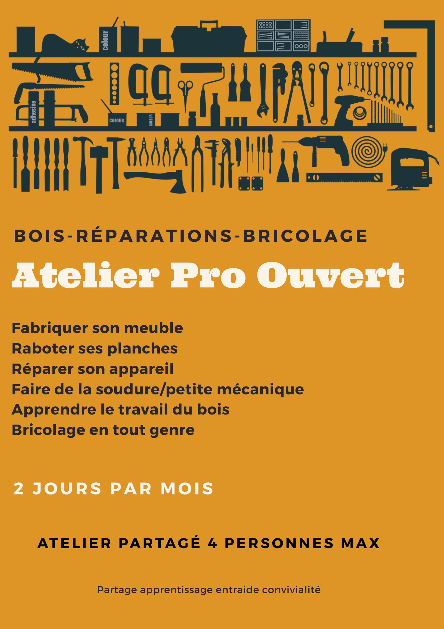 Jours d’ouverture de l’atelier ouvert et partagé