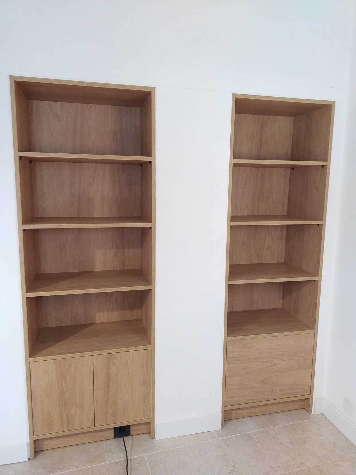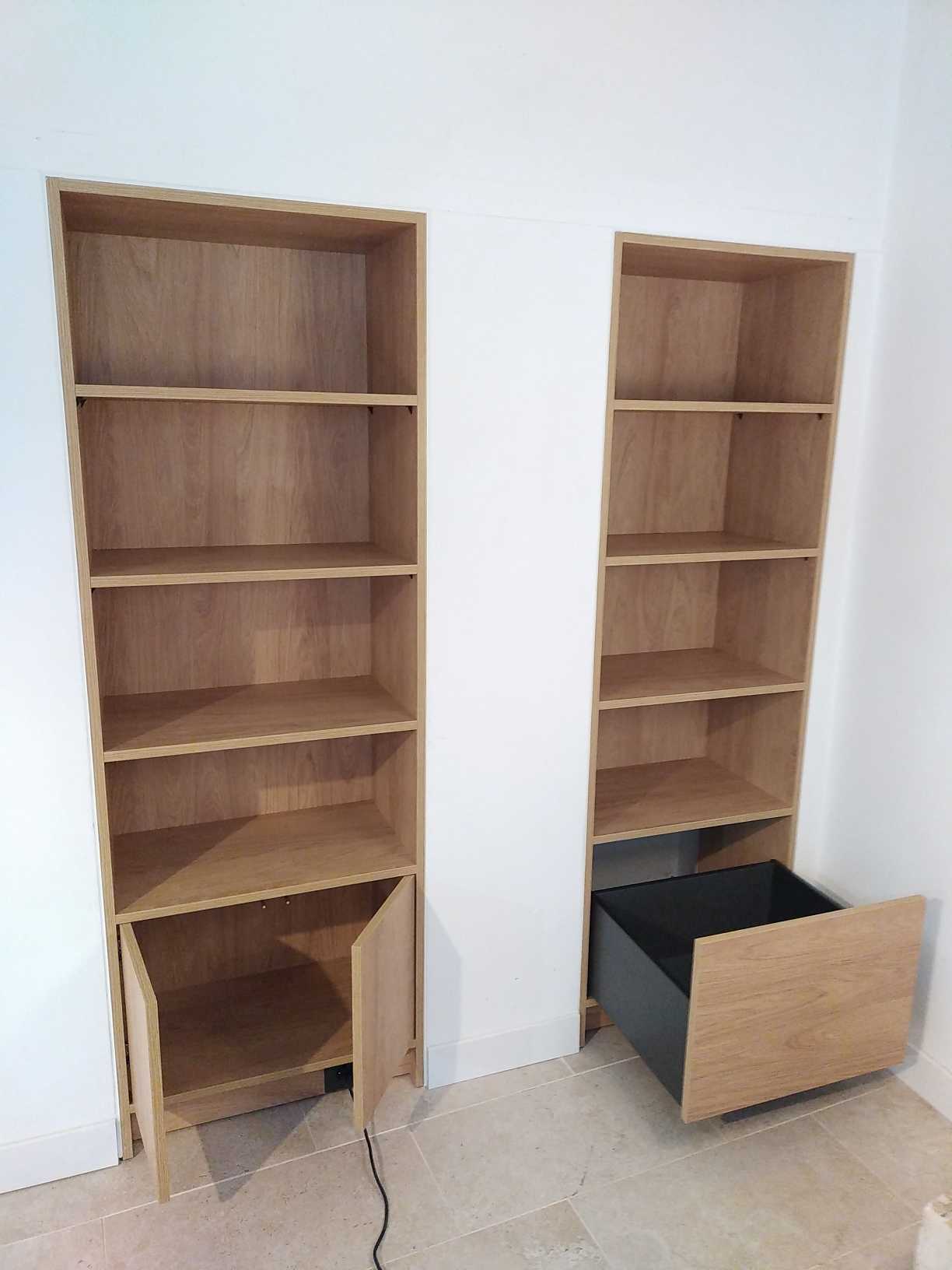 Meubles sur mesure encastrés. Stratifié bois, portes et tiroir sans poignées « push to open »