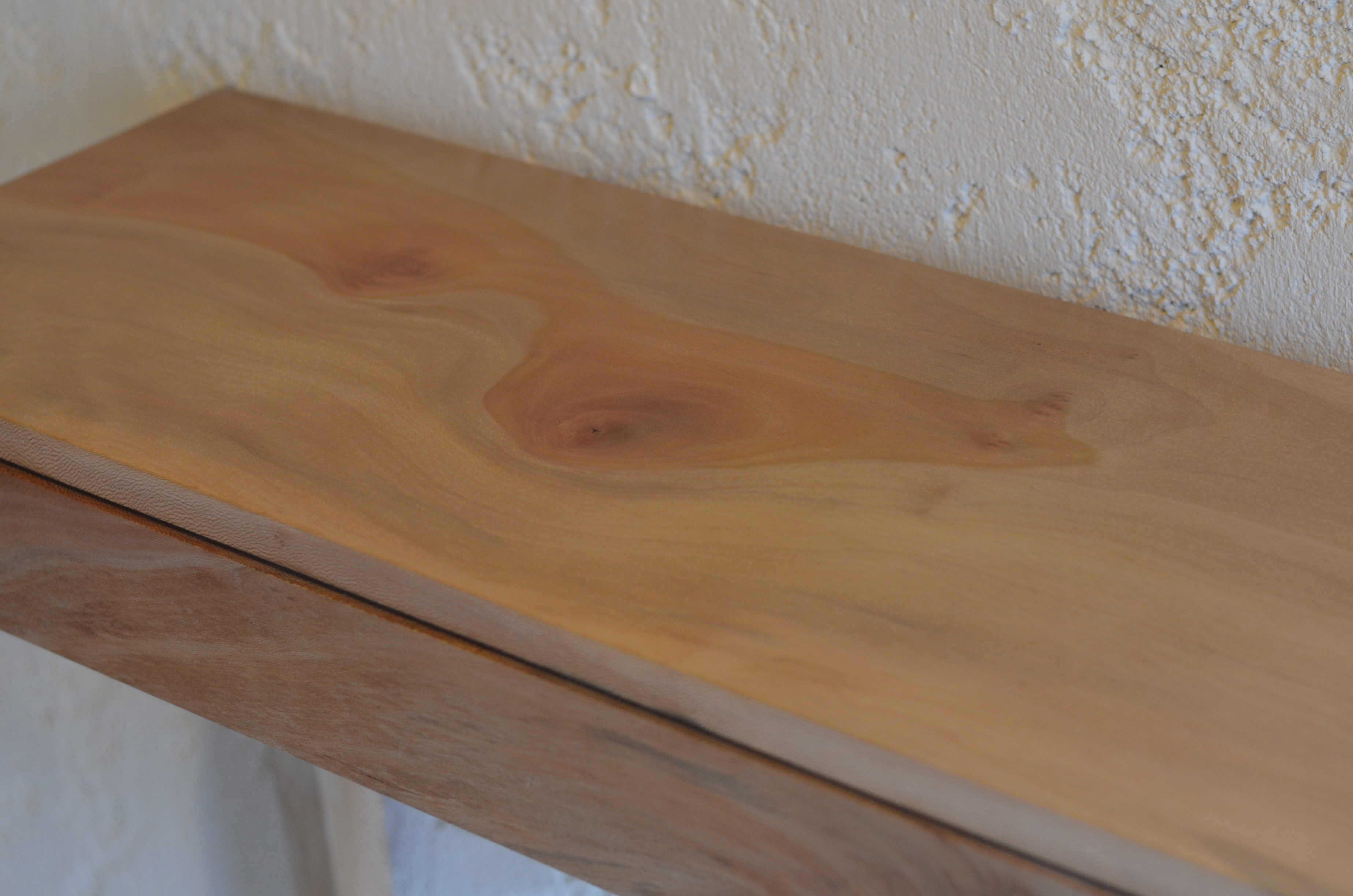 Table console en bois de platane, pieds gainés et plateau « aérien »