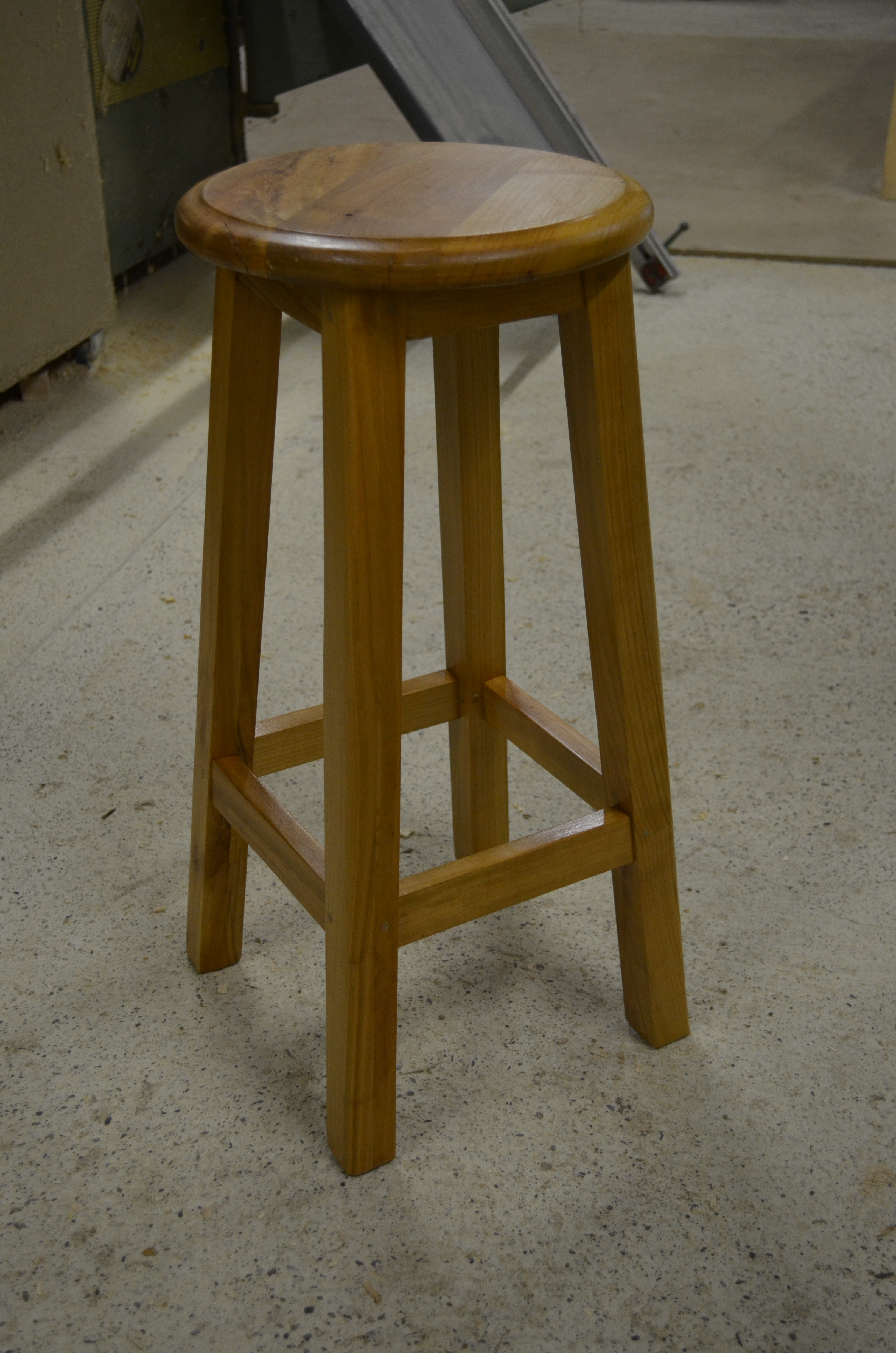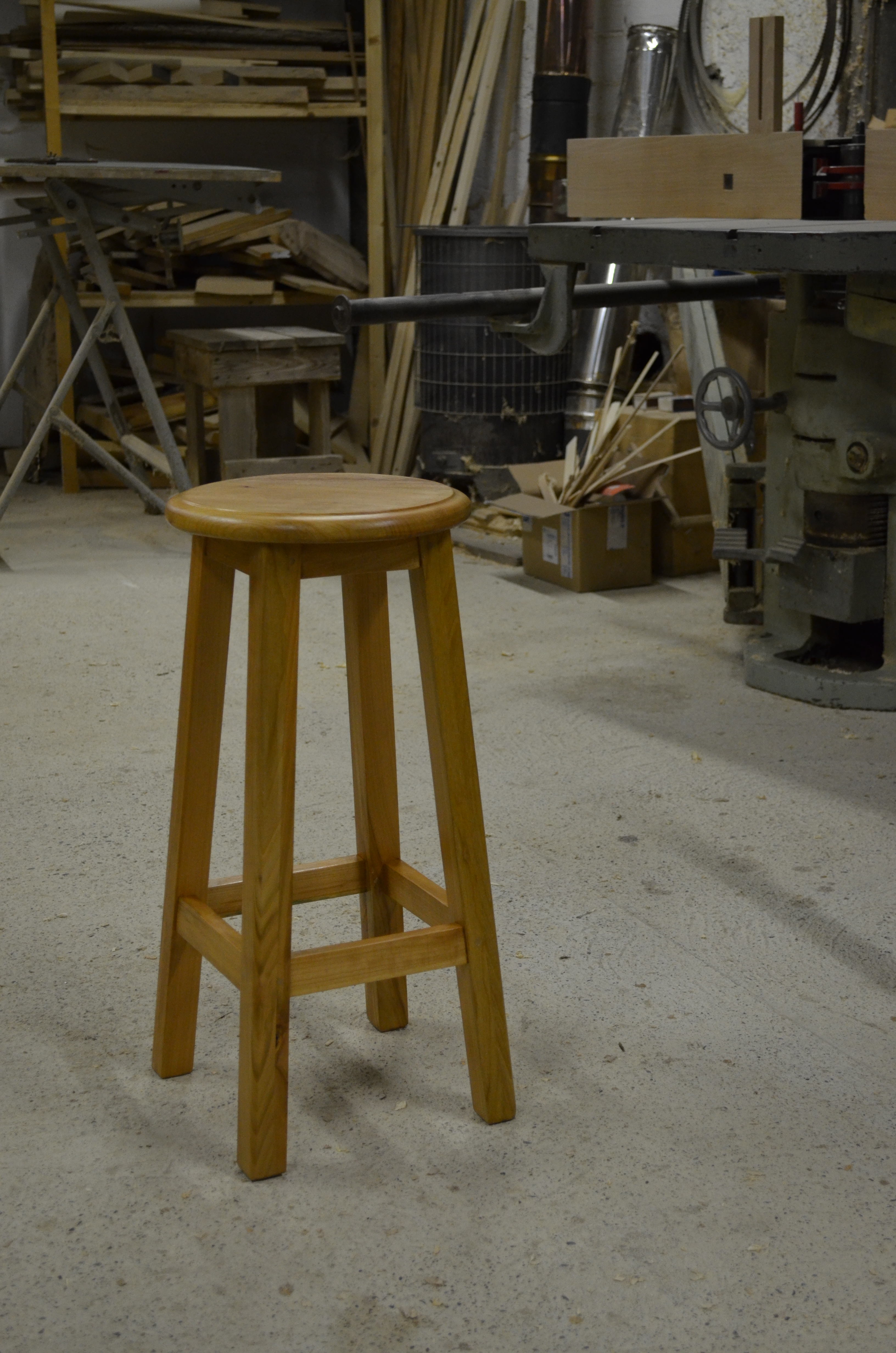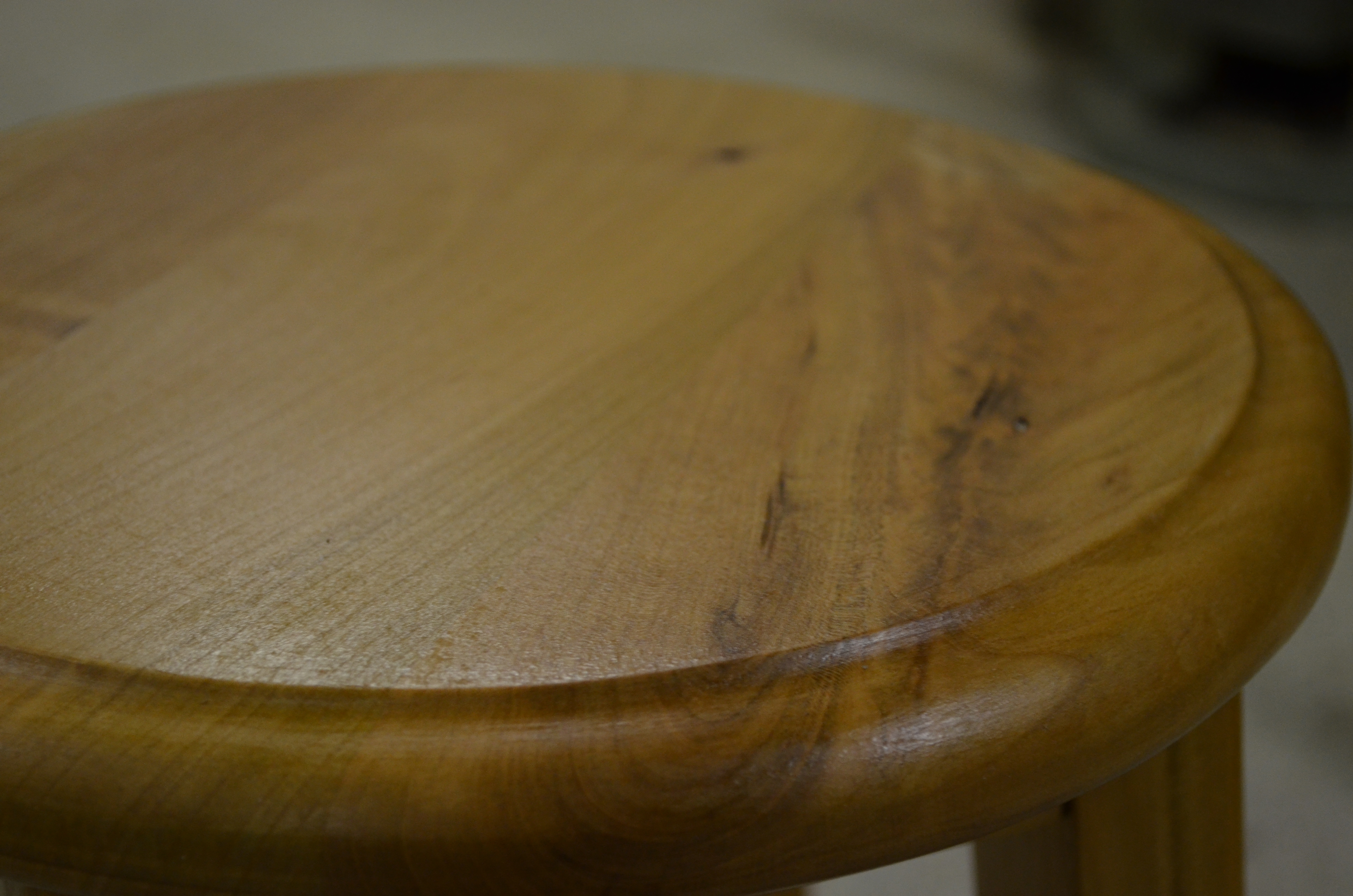Joli tabouret en bois de merisier réalisé par Joy , en stage découverte à l’atelier.