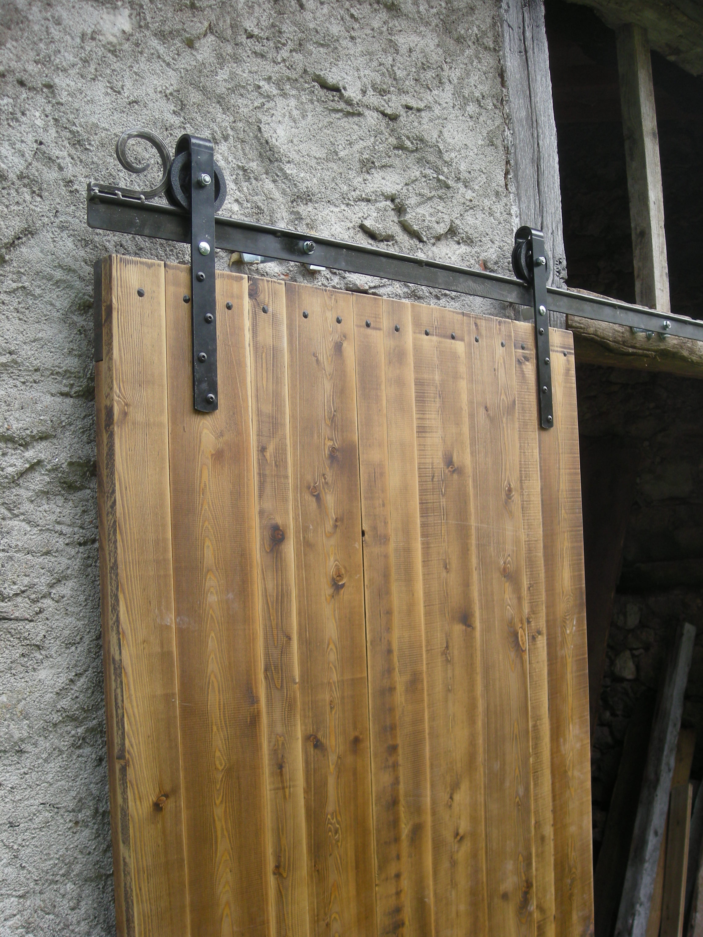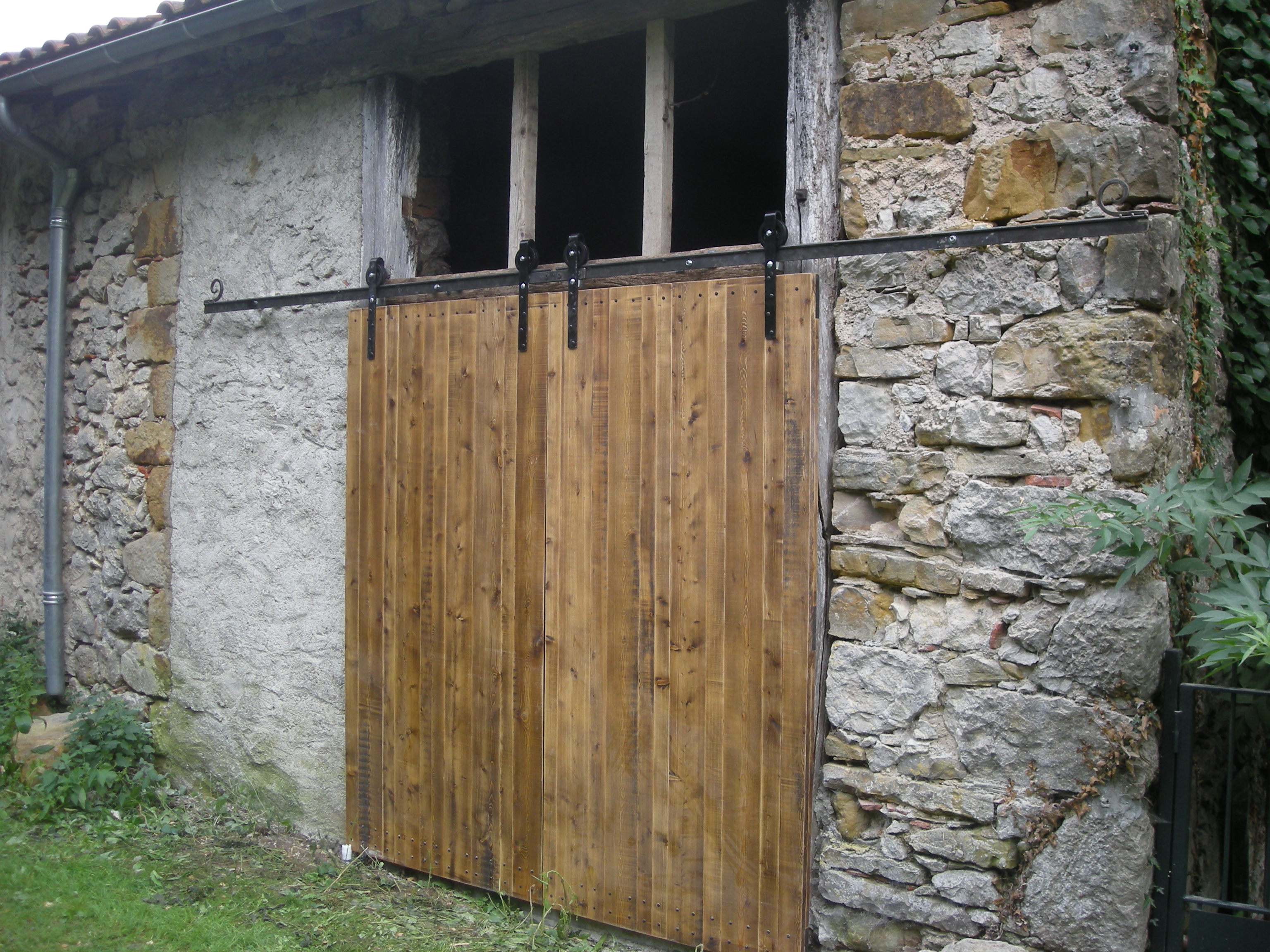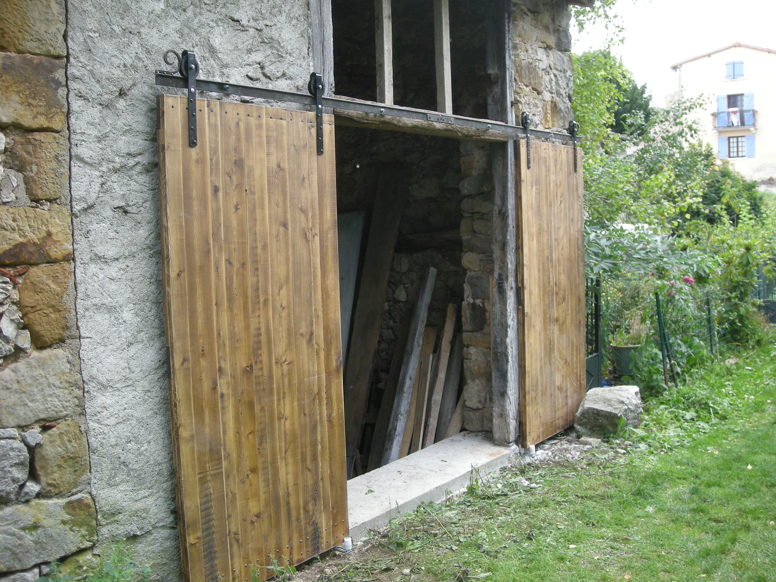 Fabrication et pose d’une porte de grange coulissante en bois de mélèze patiné