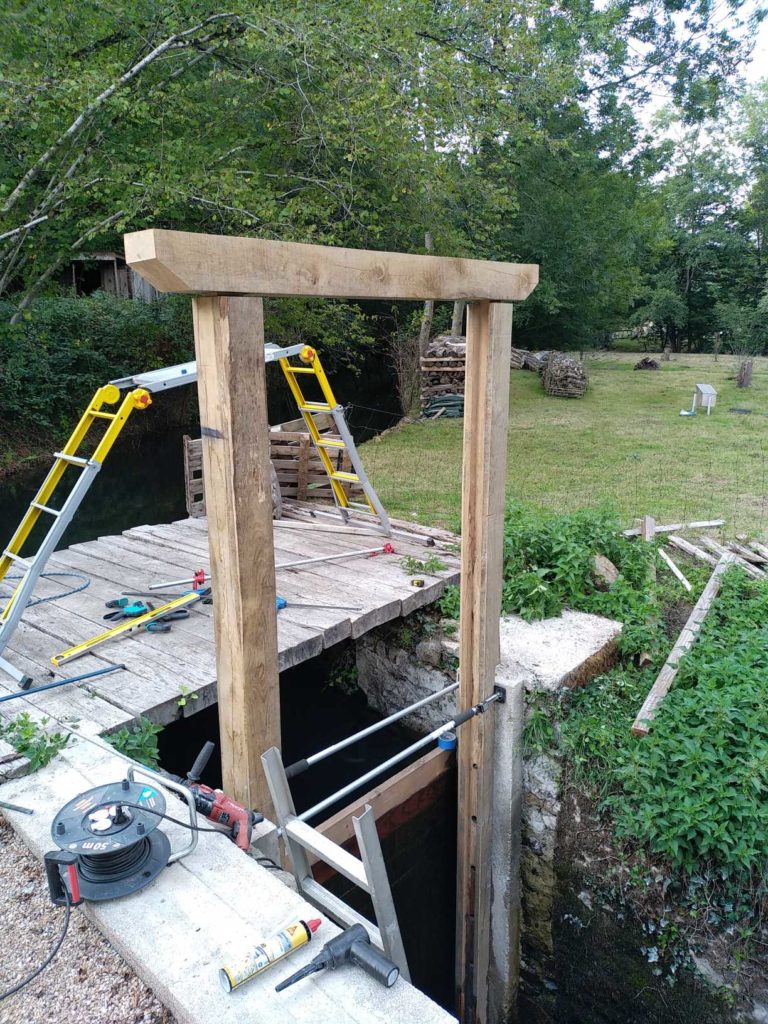 Une vanne de ruisseau en chêne 25 septembre 2025 / Thomas Portique de la vanne avec rainure pour encastrer un U en métal, tenon mortaise pour la traverse haute qui supporte le cric. Vanne en chêne 40mm d’épaisseur avec rainure languette. Non classé Previous post Un placard avec une ancienne porte d’armoire.